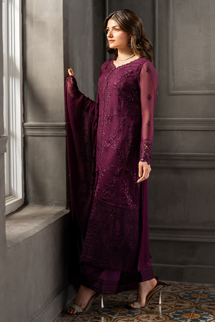 The Azure Wedding Festive Luxury Chiffon Embroidered Collection in Rose Noir offers an elegant blend of delicate chiffon fabric with intricate embroidery, perfect for special occasions. Its luxurious texture ensures comfort while the detailed design enhances your festive look with sophistication and grace. Ideal for weddings and celebrations, this collection helps you feel confident and radiant throughout your event.