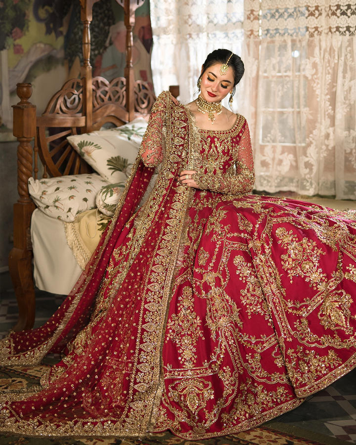 Step into timeless elegance with Faiza Saqlain’s bridal red masterpiece, where every stitch tells a story of luxury and tradition. Embrace your special day in a breathtaking ensemble that captures the essence of regal romance