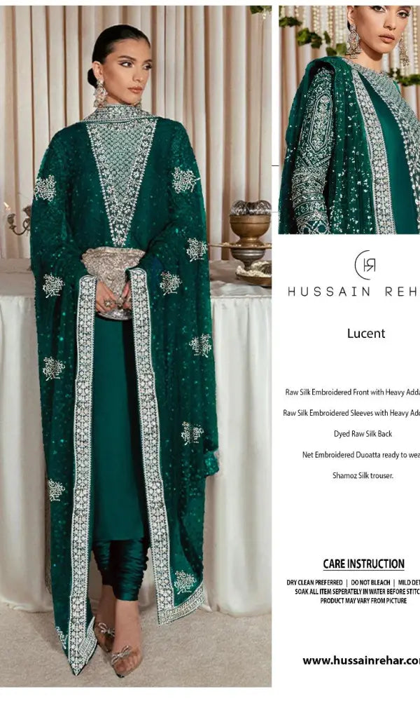 Hussain Rehar Luxury Raw Silk Unstitched Collection LUCENT EC 135 Formal BOTTLE GREEN