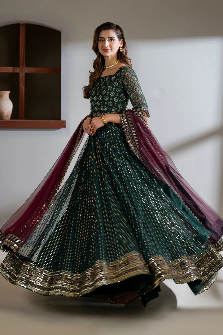 Iznik Meraki Luxury Embroidered Dark Green Luxury 3 Pc Unstitched Net Maxi D-07