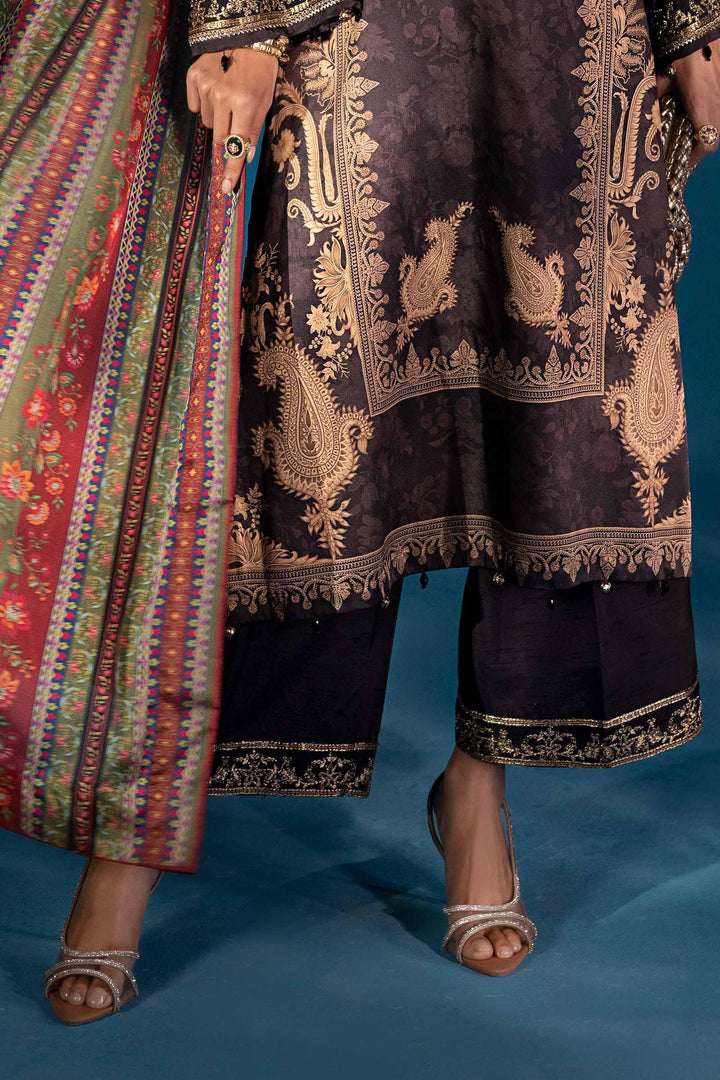 Elevate your wardrobe with this stunning Maria.B Embroidered Satin Silk Suit, a three-piece unstitched ensemble designed for the modern woman. Crafted from luxurious satin silk, this suit features intricate embroidery work that showcases traditional artistry with contemporary flair. The unstitched format allows you to customize the fit and style to perfectly suit your preferences and body measurements. Ideal for weddings, festive occasions, or special celebrations, this piece combines elegance with comfort. The rich fabric drapes beautifully, while the detailed embellishments add a touch of sophistication to your ethnic collection. Perfect for those who appreciate quality craftsmanship and timeless design.