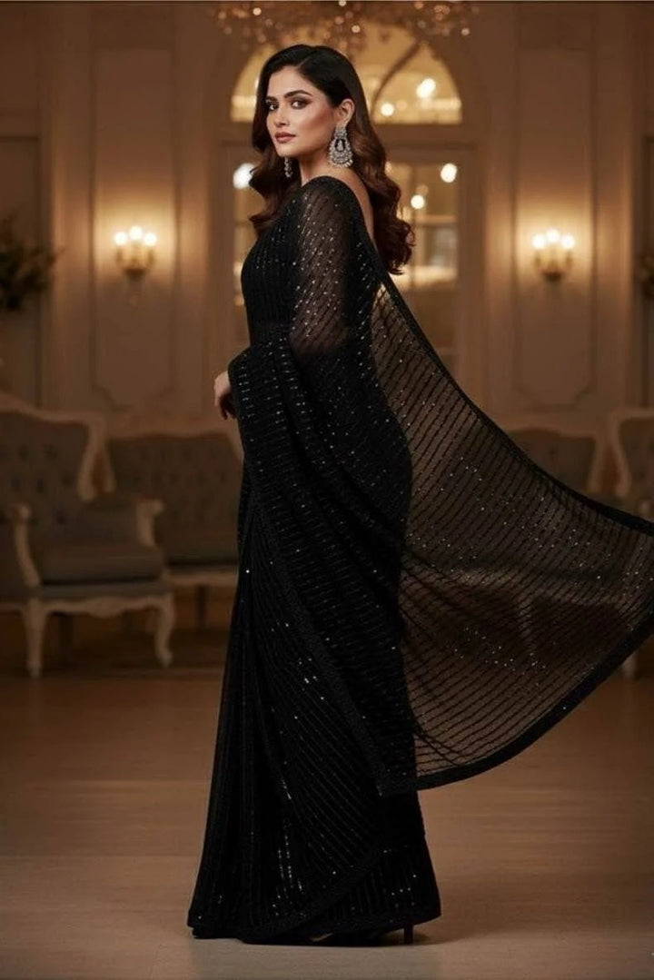 Experience elegance with the Pehnawa Luxury Chiffon Embroidered Saree in Siyah. This 3-piece unstitched set offers the flexibility to tailor your perfect fit while showcasing delicate embroidery on soft chiffon fabric. Ideal for special occasions, it combines comfort with timeless style, allowing you to express your unique grace effortlessly.