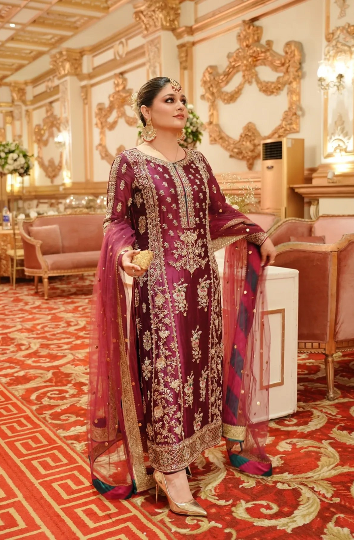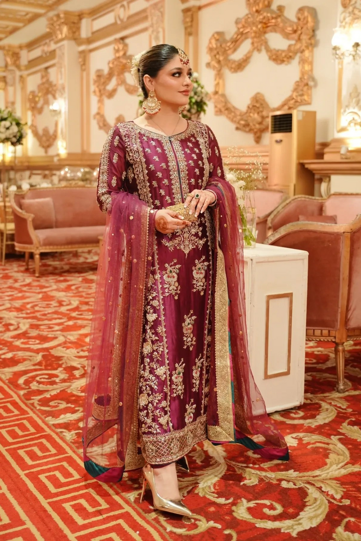 WAQAR ASGHAR Luxury Raw Silk Hand Embroidered Collection Unstitched MAH-E-GUL